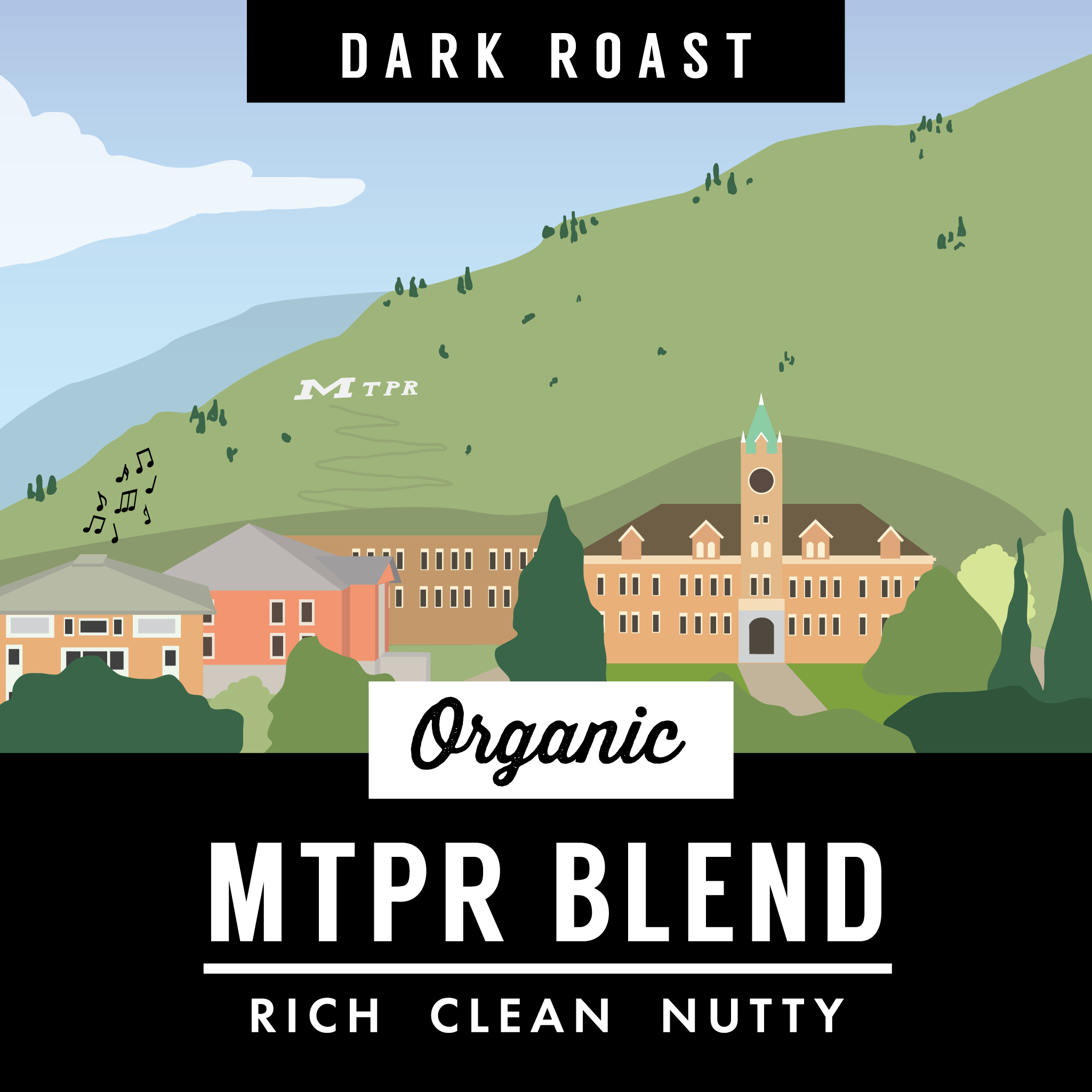 One coffee roasted two ways. We combined a rich dark roast with a sweet light roast to create an easy-drinking coffee for any time of day. A portion of the proceeds from all sales goes to listener-supported Montana Public Radio to ensure the survival of quality public radio in our state. Tune in everyday, all day with this delicious cup in hand.