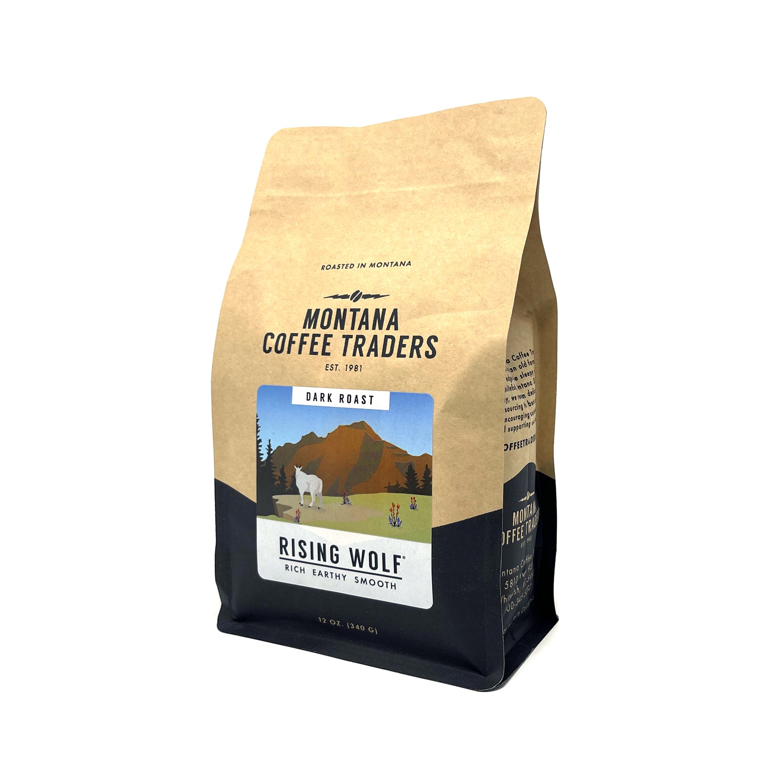 Big and bold, Rising Wolf pays homage to the first visible peak and most dominating mountain seen when entering the Two Medicine area of Glacier National Park. Rich, with a smooth chocolate mouth feel, this full-bodied blend holds its own with or without cream.