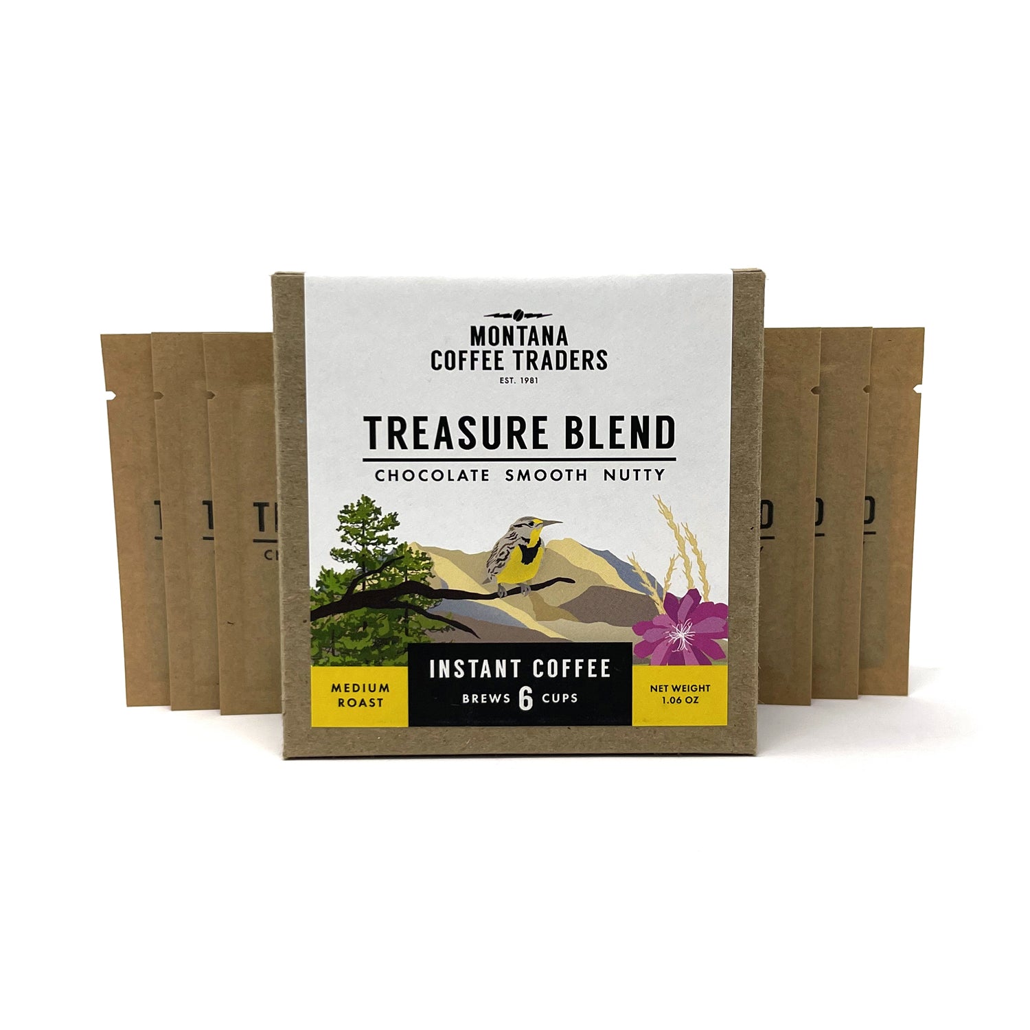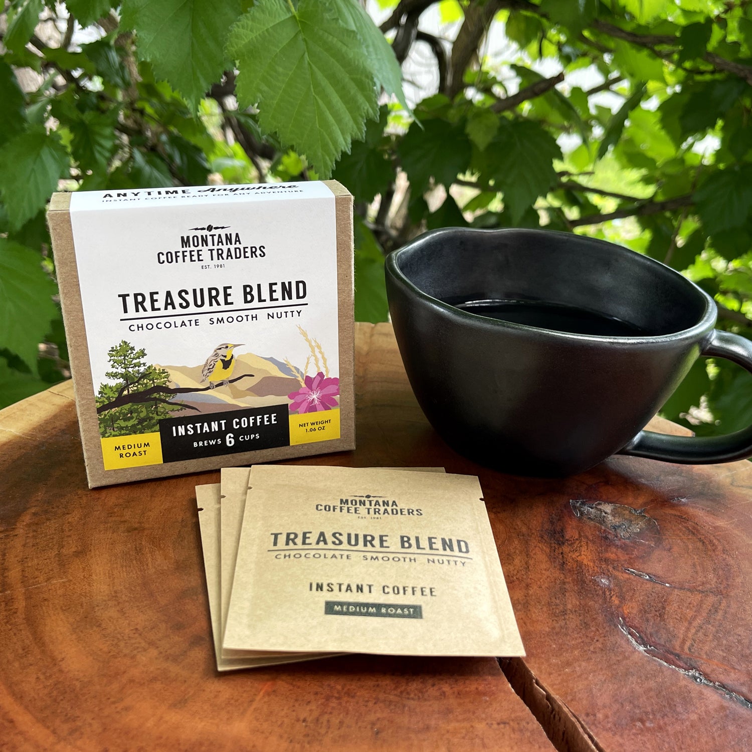 Take Treasure Blend on the go with our new adventure ready single serve instant coffee. Simply add 8-10oz of hot or cold liquid (water, milk or milk alternative), give it a stir and enjoy!