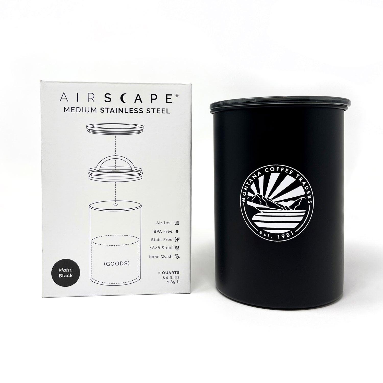 Our MCT Black Edition Airscape holds just over a pound of coffee and clear lid allows you to see when it's time to restock the beans.